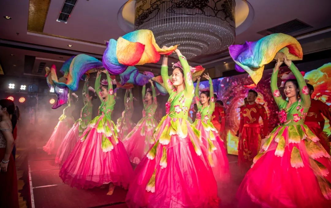 ▲10月16日,中国(海南)媒体融合发展论坛儋州媒体推介会现场的歌舞表演。